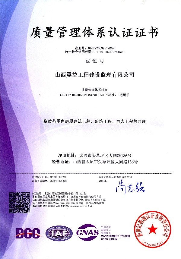 山西震益工程建設(shè)監(jiān)理有限公司【原太原鋼鐵(集團)工程建設(shè)監(jiān)理有限公司】成立于 1998年4月,注冊資金 600 萬元,是******批準(zhǔn)的具有甲級執(zhí)業(yè)資質(zhì)的綜合性工程咨詢服務(wù)企業(yè),具有冶煉工程、電力工程、礦山工程、房屋建筑工程、市政公用工程等5個工程監(jiān)理甲級資質(zhì)和設(shè)備監(jiān)理甲級資質(zhì)。主要業(yè)務(wù)涉及冶金、房屋建筑、礦山、電力、市政、機械、環(huán)保等領(lǐng)域的工程建設(shè)監(jiān)理、設(shè)備監(jiān)理、工程咨詢、造價咨詢、檢測試驗等。公司建立了質(zhì)量ISO9001:2015標(biāo)準(zhǔn)、環(huán)境ISO14001:2015標(biāo)準(zhǔn)、職業(yè)健康******GB/T28001-2011 idt OHSAS 1800:2007標(biāo)準(zhǔn) “三標(biāo)一體”管理體系,是中國設(shè)備監(jiān)理協(xié)會常務(wù)理事、中國冶金建設(shè)監(jiān)理協(xié)會常務(wù)理事和山西省監(jiān)理協(xié)會副會長單位。